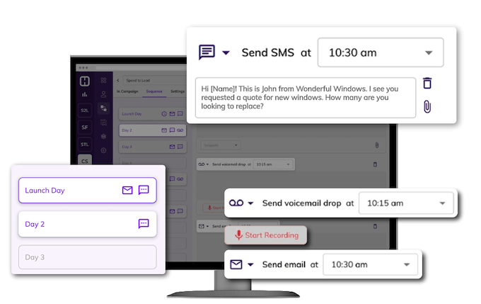 You can create different sequences for new leads, quoted prospects, dormant customers, customers with upcoming renewals, and more. And the importance of a series vs a one-off message is that it takes an average of eight touches to get a response.