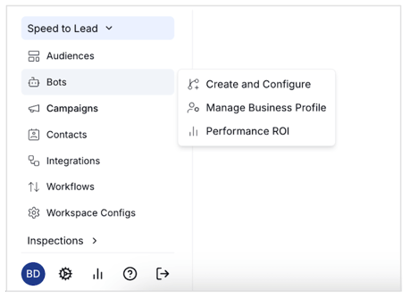 - Click on "Bots" in your Workspace tab and click on "Create and configure."