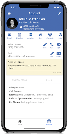Use details like pet names, allergies, and number of rooms to give your customers a personal touch over text, email, and phone, as well as on-the-job. Use custom fields in your CRM to log this information.