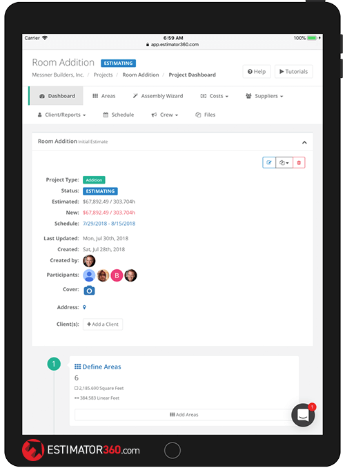 Estimator360 is an estimating and project management software for home improvement companies. Their estimating tool allows home improvement companies to collect bids from suppliers, which automatically updates pricing lists to then be referenced in an estimate.