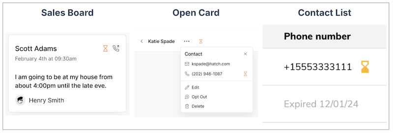 - Masked leads now appear in your workspace with an hourglass icon. Hover over that and you’ll see the date when the lead expires.