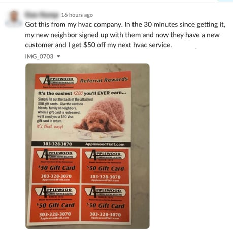 Consider creating a referral program to do just that. Offer discounts or other perks to customers who refer friends and family to increase your referral rates and even strengthen loyalty with current customers.