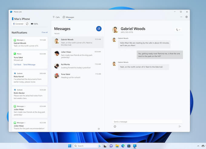 Microsoft’s Phone Link app does more than allow you to text from your computer—it gives you full access to your phone from your PC. You can see your phone’s apps, make calls, and even drag files (including photos) between your desktop and phone.