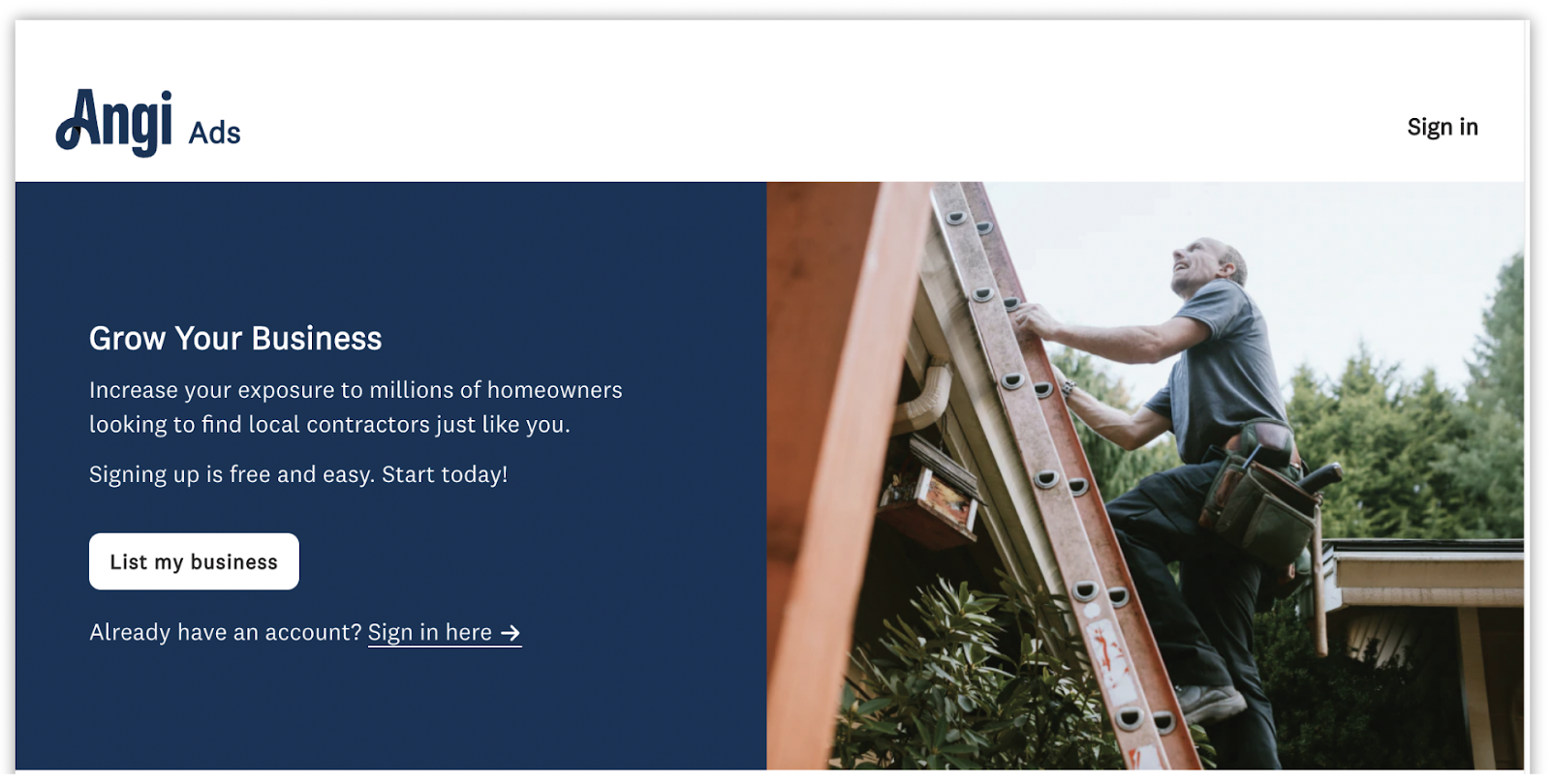 With Angi Ads, you are paying not to have leads delivered to you, but for your business to show up prominently on the Angi website and other properties. You pay an annual membership fee here as well—but for different benefits—and then your ads are a cost-per-click model.