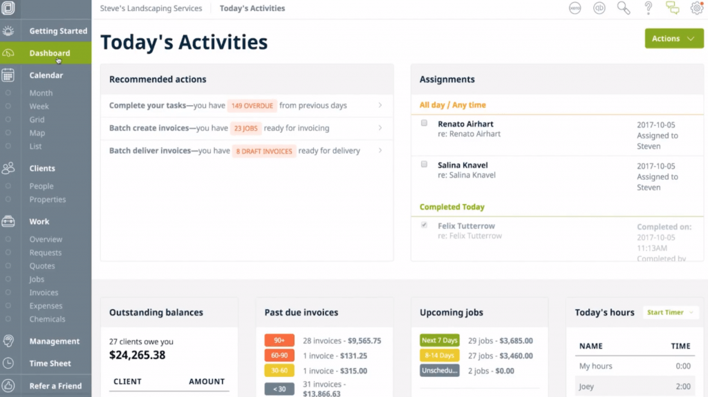 Jobber provides a Dashboard for users - a place they can see all their outstanding invoices and upcoming appointments. This makes it easy for users to keep track of what they need to do next.