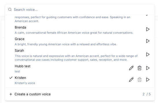 We have a lot of great voices in our voice library (Brenda is a fan favorite), but in an age where AI agents are cropping up everywhere, this feature enables you to maintain a level of authenticity and consistency in every conversation.