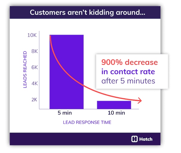Some fast speed-to-lead stats: Businesses that follow up with a lead within an hour are 900x more likely to connect with that lead. Plus, 78% of homeowners go with the company that called them back first.
