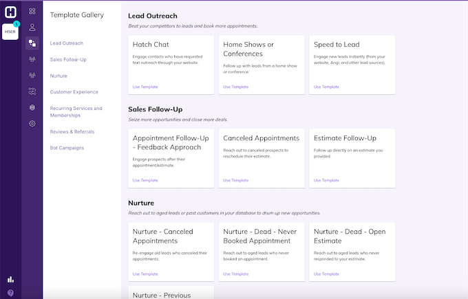 How to view, implement, and modify Hatch campaign templates. Hatch campaign templates are recommended messaging sequences for specific use cases, to help you maximize response rates, reduce opt-out rates, and reduce spam rates. The duration, frequenc