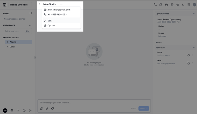 - Opt-out this contact—this will prevent any outbound messages from Hatch (in any medium) from reaching the contact