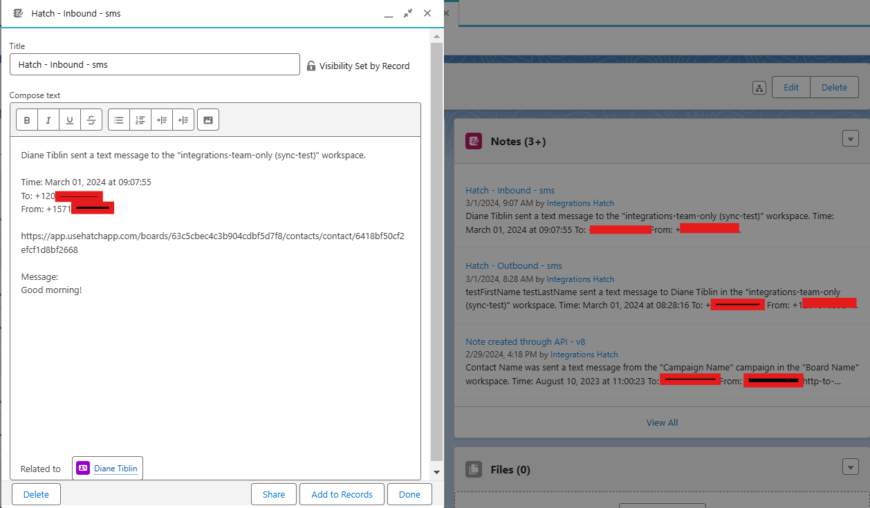 Hatch events and communications can be sync’d to Improveit360 Lightning in the following scenarios. These options are configured during the integration setup and can be reconfigured at any time.