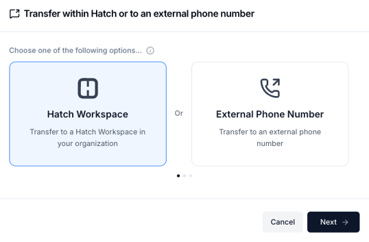 You can set up live transfers to any Hatch workspace that shares contacts with your Voice AI agent, including the workspace where the agent is configured! Just like an external transfer, Hatch will track that a caller called one workspace, and the contact was transferred to a second workspace on the contact card.