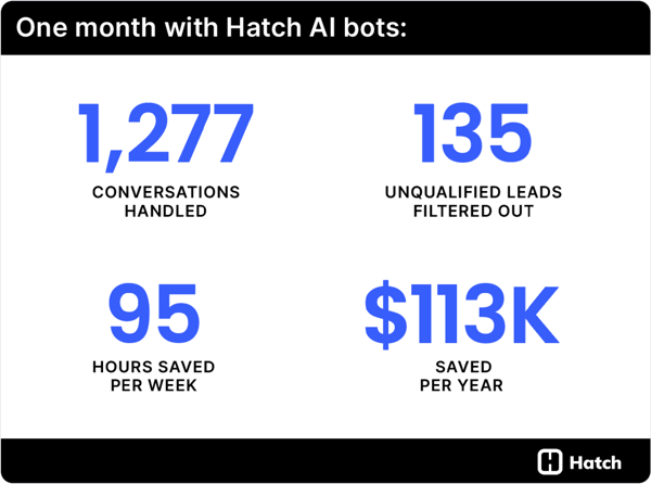 In addition to helping generate more revenue, Hatch AI is helping Apex brands to save money. In the last 30 days, their Speed to Lead bots alone have: