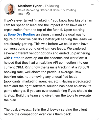 Bone Dry Roofing Tripled Their Set Rate with Hatch